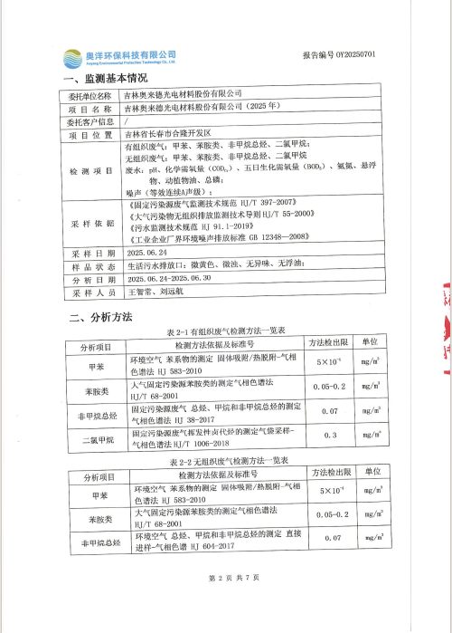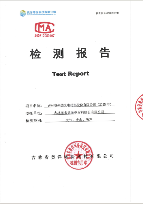 关于吉林奥来德光电材料股份有限公司 2024年全年危险废物产生情况的公告